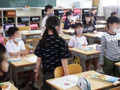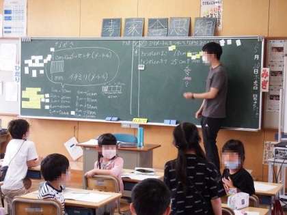 算数で長さの学習に取り組んでいます。今日は、教科書のたての長さでとても盛り上がっていました。測った結果が、ミリ単位で微妙に違います。みんな、自分が測った結果に自信をもっているようでした。