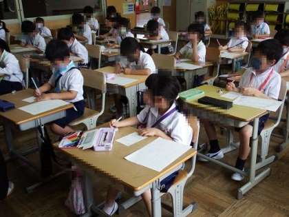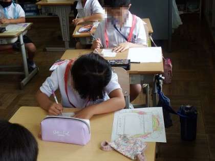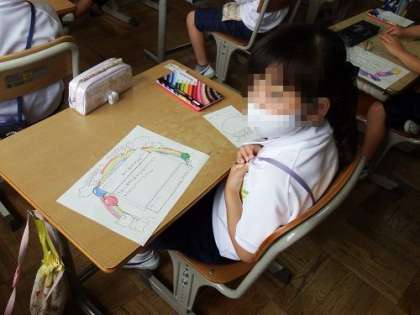 1年生は、入学のお祝いのプレゼントとして、2年生や6年生(なかよしグループの代表として)から、メダルをプレゼントしてもらいました。この日は、そのお礼のメッセージを書きました。このメッセージをもらう2年生や6年生もきっとうれしいはずです。