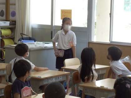 1年生の道徳の授業で、「ありがとう」や「ごめんなさい」と言った時の相手の気持ちを話し合いました。子どもたちからは、言ったときは、「うれしい」「こころがきれい」「わくわくする」そんな気持ちが素直に発表されました。