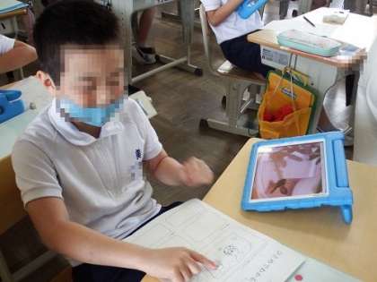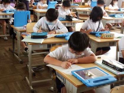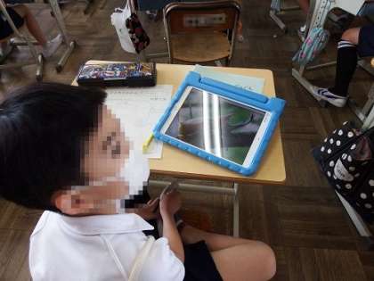 チョウの成長を教室で観察している3年生の子どもたち。今日は、チョウ以外の昆虫の育て方を調べました。トンボやバッタ、カブトムシ、クワガタ、テントウムシなど子どもたちは自分の好きな昆虫をタブレットを使って調べ、メモをとっていました。