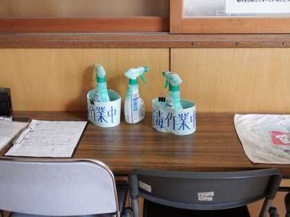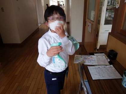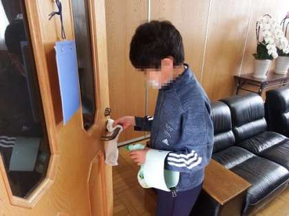 新型コロナウイルス感染症の対策の一つとして、保健委員がみんながよく触るドアの取っ手などの消毒作業を行っています。清掃時間を利用しての活動ですが、活動の意義をよく理解し、責任をもって活動してくれています。素晴らしいです。