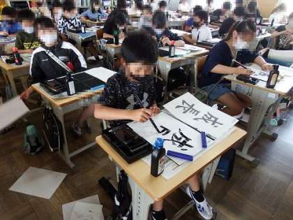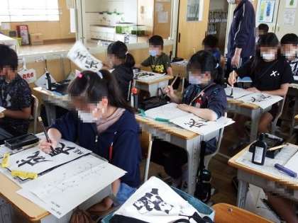 5年生の書写の授業です。この日は、「成長」という文字を書きました。5年生になって、書写で書く字も難しくなってきました。自分自身へ成長の願いも込めながら、心をこめて書いていきます。