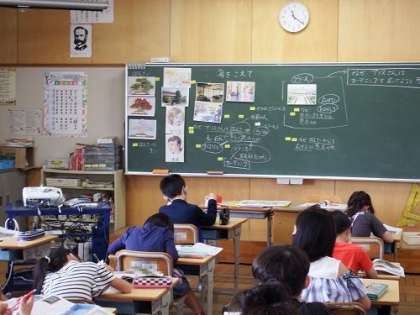 4年生の道徳で「海をこえて」という題材をもとに学習を進めました。日本の盆栽を学びにフランスからやってきた主人公。その生き方に焦点をあて、話し合いを深めました。