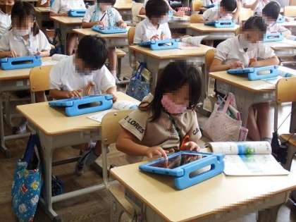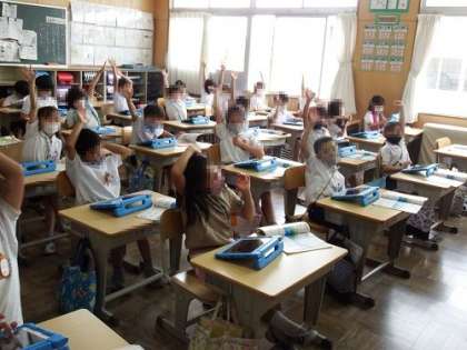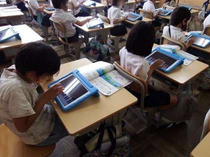 音楽の授業で、タブレットを使って、ピアノ演奏の指の動かし方を学習しました。曲は「かえるのがっしょう」です。ドレミファミレド、ミファソラソファミ。最初は、難しそうにしていた子どもたちも徐々に演奏になれ、楽しそうでした。