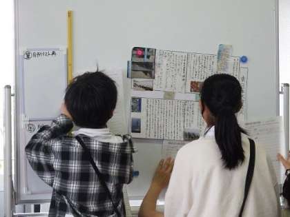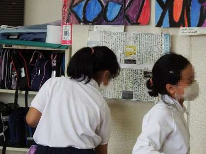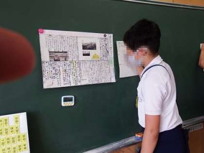 社会科の学習で、東日本大震災について学びました。グループで新聞を作り、みんなで見合う活動に取り組んだ様子です。震災の大きさとみんながそれにどう立ち向かったか、あらためて考えるきっかけとなりました。