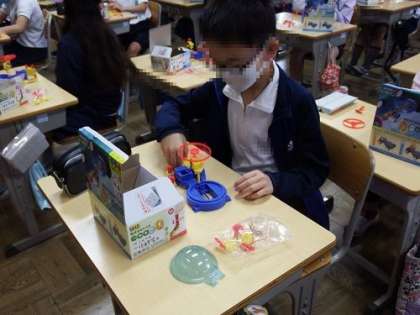 4年生の理科「電池のはたらき」の学習に入りました。今日は、初日です。電池を使った回路をつくり、プロペラを飛ばすことに挑戦しました。最初は、プロペラが飛ばなかった子どもたちですが、回路を工夫することによって、プロペラを飛ばせるようになりました。そこに電流が関係していることに気付いたようです。これからの学習が、益々楽しみになりました。