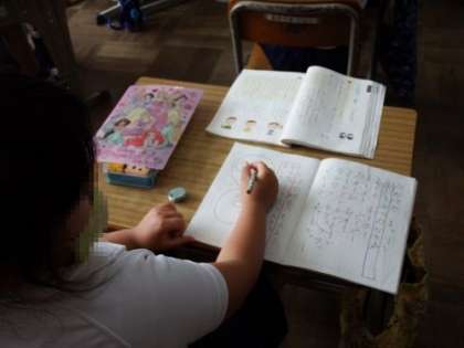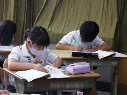 国語「ことばで絵をつたえよう」の学習の様子です。絵をことばで伝えるためには、どうしたらよいのか、相手に伝えるために何に気をつけたらよいのか、今日は、簡単な図形を伝えるための練習を行いました。