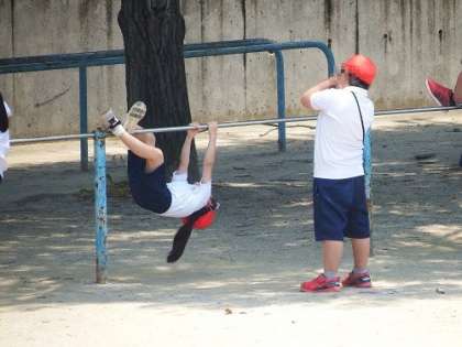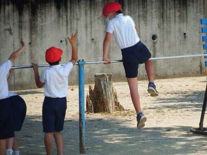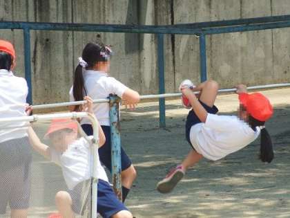 今日は、体育の時間に鉄棒の学習をしました。モノレールやふとん、サルの絵かきなど子どもたちが各自でいろいろな技にチャレンジしました。技ができると大喜びです。次々の技をクリアしていました。