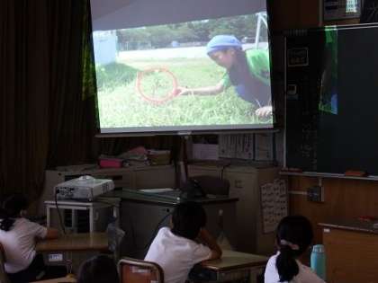 生活科で行っている虫の観察。今日は、ビデオを使ってバッタのことを学習しました。住んでいる場所や生活など、子どもたちはビデオにくぎ付けとなりました。これからの授業につなげていきたいです。