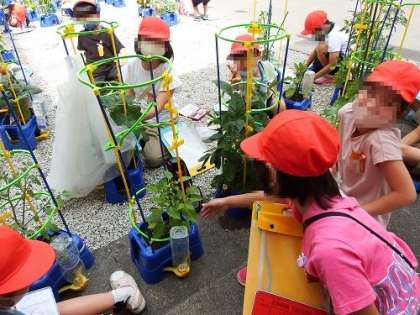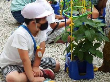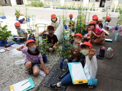 子どもたちは「見て見て、こんなにたくさんなってる」と見せてくれます。早く食べられるくらいに育ってほしいと願いながら。
