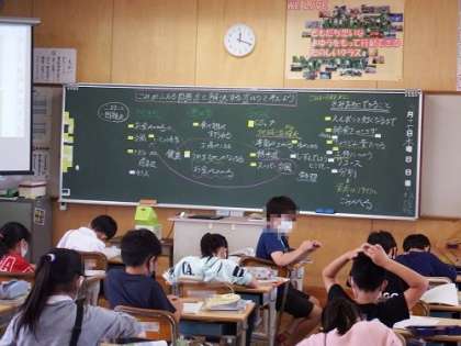 4年生のごみについての学習です。この日は、ごみが増えることによる問題点とそれを解決する取組について考えました。お店や地域などでの取組もありますが、自分たちができることはないのか、子どもたちなりに真剣に考えていました。