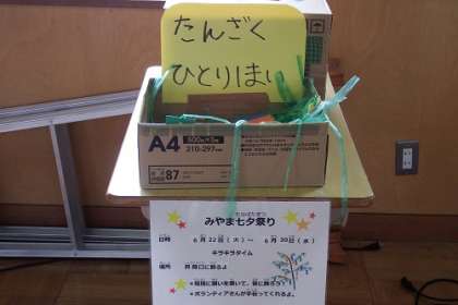 プチボラみやま隊の皆さんが、「みやま七夕祭り」を企画していただきました。例年は、図書室で短冊を書いていますが、今年は、ご配慮をいただき、各学年広場に短冊のポストを設置していただきました。6月30日(水)までが、短冊の提出期間です。子どもたちの願いが届きますように。