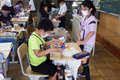 この日は、「電流が大きいとモーターが速く回り、豆電球の明るさが明るくなるか」について実験で調べました。直列つなぎや並列つなぎなど、いろいろな方法を試してみました。