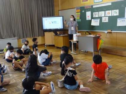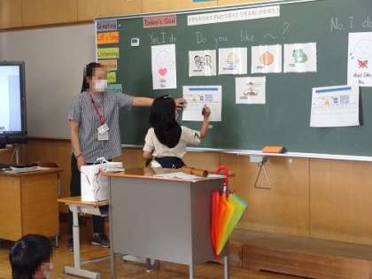 3年生の外国語の授業で、「好きなものを尋ねたり答えたりする言い方」について学習しました。先生の好きなものとそうでないものを予想して尋ねる活動から、友達の好みを予想してインタビューする活動を行いました。みんな楽しみながら学習に参加できました。