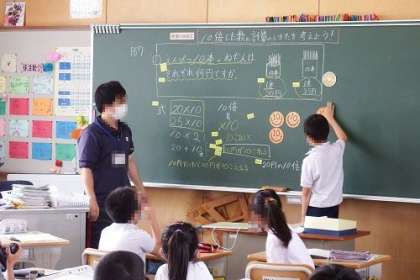 3年生の算数の学習の様子です。今日は、「10倍した数の計算」を考えました。絵や図を使い、10倍することの意味を考え、立式につなげました。