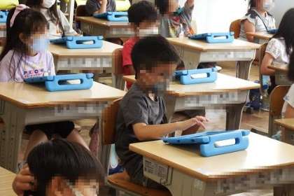 1年生もタブレットの使い方に慣れてきました。この日は、タブレットを操作して、算数の問題にチャレンジしていました。子どもたちの学習スピードをとてもはやいです。