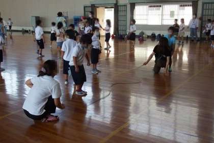 先週に引き続き、プチボラみやま隊の皆さんが、大縄跳びの企画を行っていただきました。今回は、1・2年生が対象です。希望者が、きらきらタイムに体育館に集まって、いろいろな大繩にチャレンジしました。子どもたちの「楽しい!」という声があちこちで聞こえました。ありがとうございました。次は、5・6年生です。