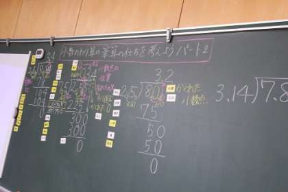 5年生の算数の授業で、「小数のわり算の筆算の仕方」を学習しました。小数の筆算は位取りが難しいです。繰り返し練習しながら、計算に慣れていってほしいです。