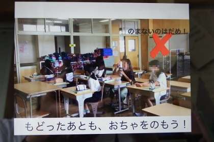 熱中症対策のビデオの続きです。写真は、低学年用ビデオの一部です。