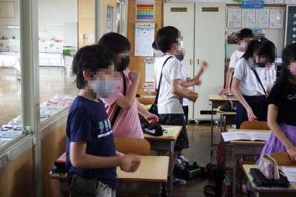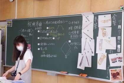 音楽で「祝典序曲」の鑑賞を行いました。オーケストラが奏でる音色を感じることが大きな目標です。木管楽器や金管楽器、打楽器などの違いについて学習しました。
