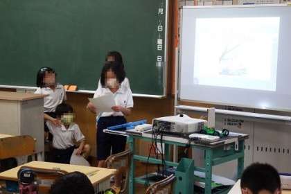 3年生の社会科で豊田市の学習を進めています。グループごとに豊田市の各地区を調べ、発表会を行いました。各地区の農産物やお祭り、記念物など、タブレットを使ってまとめ、上手に紹介することができました。みんな各グループの発表を興味深そうに真剣に聞いていました。