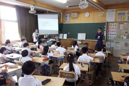 3年生の社会科で豊田消防署西分署の方にお越しいただき、119番通報を実際にかけなければならなかった時を想定し、授業を行いました。119番を通報し、自分の家の住所をきちんと答えられる子が多くびっくり。いざという時の心構えができたでしょうか。