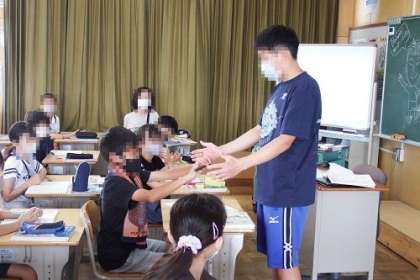 写真は、5年生算数の学習の様子です。この日は、「割合を表す小数を求めよう」が課題でした。問題として、人とその影を使っていました。楽しそうに取り組む子どもたちの姿が印象的でした。