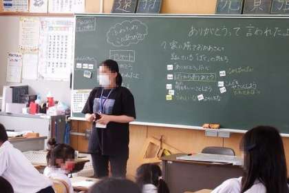 2年生の道徳の授業で、「ふわふわことば」の中の「ありがとう」という言葉に焦点をあてて、授業を展開しました。「ありがとう」と言った時と言われた時、どんな気持ちになるでしょう。生活の中で、こんな言葉がたくさん使われるようになるといいですね。