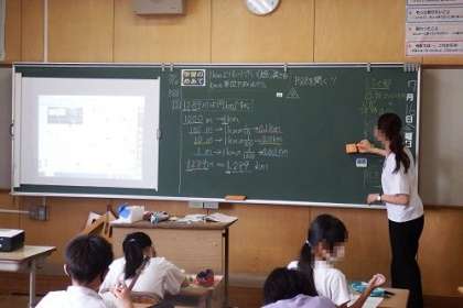 4年生の算数で「1キロメートルより短い長さを、キロメートルの単位であらわそう」の学習に取り組みました。1キロメートルは1000メートルをもとに、100メートル、10メートル、1メートルを考えます。