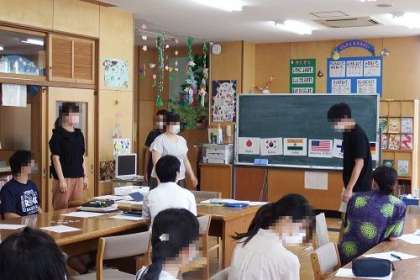 職員による校内OJT研修の続きです。写真は、外国語科の研修の様子です。授業で使える指導者が使う英語や子どもたちが楽しめる英語を使ったゲームなどを学びました。