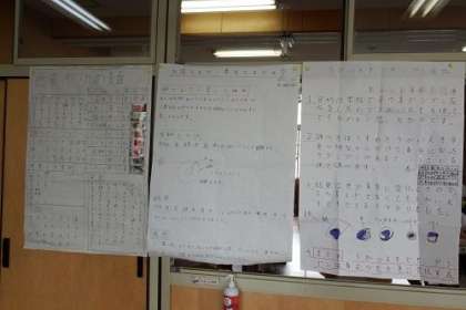 長い夏休み期間中に取り組んだ科学研究が、掲示してあります。子どもたちの夏の学びの跡がわかります。それぞれがとてもおもしろい研究課題に取り組んでくれました。