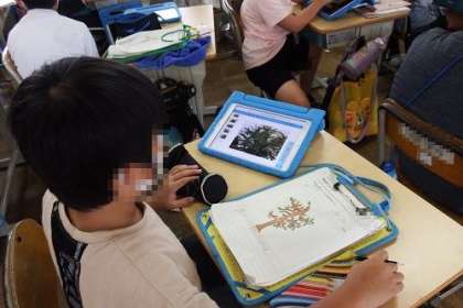 理科の授業で、木々の観察を行いました。夏休み前とは、植物の様子も大きく変化しました。教室にもどって、タブレットを使いながら観察記録をしっかりとまとめました。