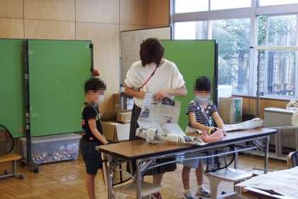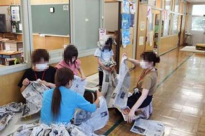 「新聞紙がドレスに!」子どもたちが、新聞紙を使ってアートに挑戦しました。ドレスや帽子、剣など、講師の西沢様のお話を伺いながら、思い思いに作品作りを進めました。子どもたちにとって、とても楽しい素敵な時間になりました。