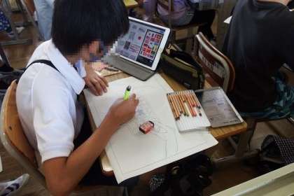 図工の学習で「私たちはみんなつながっている」をテーマに、平和ポスターの作成に入りました。まずは、「つながっている」をキーワードに構成を考え、下書きを作成しています。これからどんな作品になっていくのか楽しみです。