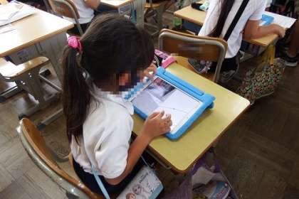 今日は、タブレットのグーグルマップのストリートビューを使って、調べ学習に取り組みました。教科は生活科、「わたしのまち はっけん」です。教室にいながらにして、自分が調べたい学区の様子が写真でわかることに子どもたちはびっくりです。