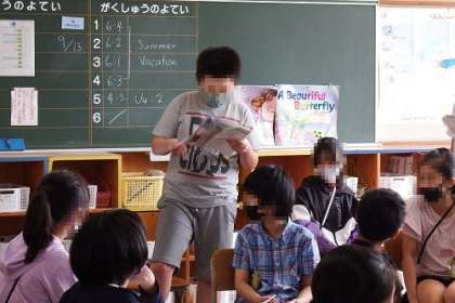 英語で「夏休みの思い出を紹介!」。「I went to 〜」「I enjoyed 〜」「I ate 〜」などの文を使って、友達にアピールしました。どこへ行ったの?何を楽しんだの?何を食べたの?夏休みの思い出を真剣に聞き取っていました。