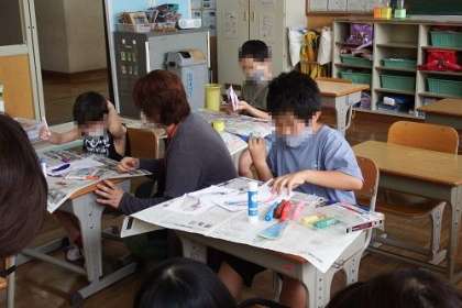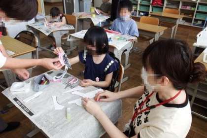 ゆらゆらゆれるオウム作りに挑戦しました。曲線にあわせて上手に切り抜きます。線に合わせて切らないとバランスがくずれ、オウムがゆらゆらゆれません。切り抜いたオウムに思い思いの色を付けました。