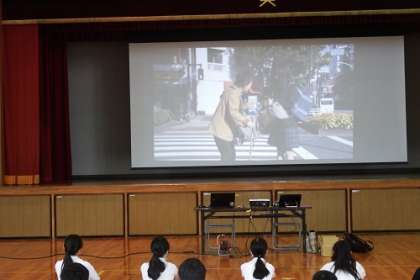 豊田警察署の方をお招きし、5年生が情報をモラル学習に取り組みました。クラスを分け、体育館でお話を聞きました。インターネットや携帯など子どもたちにとって益々身近になっています。どんなことに気をつけたらよいのか。5つのポイントをお話いただきました。