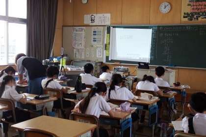 「2けたでわるわり算の筆算」の学習が進み、この日は、商が2けた、3けたになる筆算に取り組んでいました。位の取り方が難しく、気をつけていないとミスしやすい問題です。繰り返し練習をして慣れていきたいです。