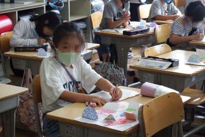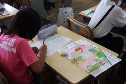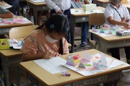 図工の時間に取り組んできた「まどからこんにちは」の完成が近づいてきました。子どもたちは、自分の作った作品を進んで紹介してくれます。個性あふれる作品がいっぱいです。