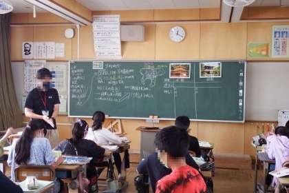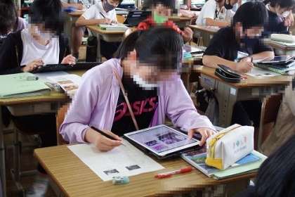 授業はとうとう室町時代に入ってきました。足利氏による政治や応仁の乱を学習した後、金閣や銀閣に代表される室町の文化について調べ学習を行いました。特に、金閣と銀閣の違いを、タブレットを使って調べています。