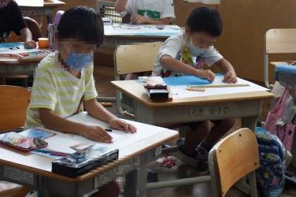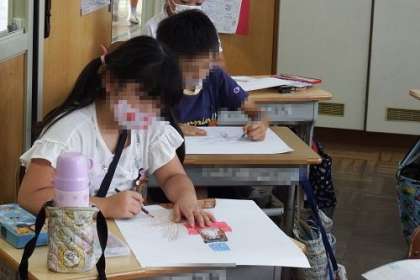 夏休みの思い出の楽しかったことやどきどきしたことを絵に表しました。子どもたちは、おばあちゃんの家に行った時の思い出や家族でプールや観覧車に乗った時のことなど、夏休みの楽しかったことをうれしそうに思い出していました。