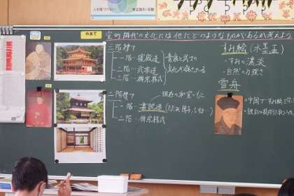 社会科の時間に室町時代の文化をまとめました。金閣と銀閣を中心に学習しましたが、当時の文化がたたみやふすまなど現代の和室につながっていることに感心したようです。
