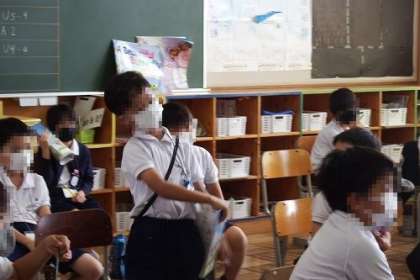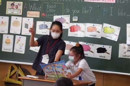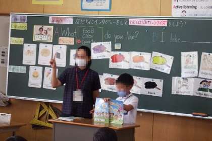 外国語の学習で、友達にインタビューして、「わたしはだれでしょうクイズ」を英語で出題しました。出題者から出されるヒントをもとに、だれかを当てていきます。当たった時はみんな大喜びです。