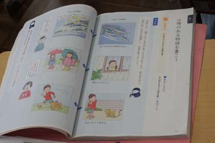 国語「山場のある物語を書こう」で、教科書に掲載してある2つの絵から、山場のある物語をつくる学習を行いました。段落の役割や相互関係に注意して文章を書く力を身につけることが目的です。子どもたちの豊かな発想の物語ができるのを期待しています。