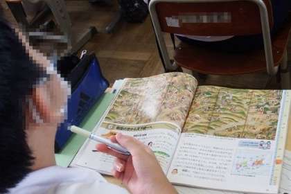 社会科の授業で「長篠の合戦」に取り組みました。有名な合戦の屏風絵の読み取りから、織田信長が鉄砲隊を組織し、戦国時代の戦いを大きく変えることになったことに気が付いていきました。