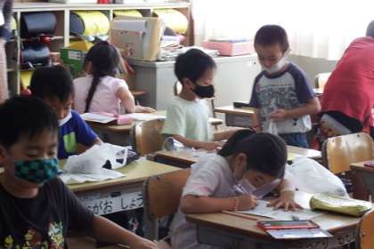1年生が深田公園を秋を見つけに出かけてきました。今日は、昨日出かけなかった3クラスです。どんぐりやまつぼっくりをたくさん拾ってきました。中には、栗を見つけてきた子も。秋をめいっぱい感じてほしいです。
