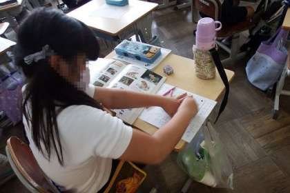 国語の学習「ビーバーの大工事」を進めています。今日は、ビーバー以外の動物の秘密を本などを使って調べました。「ぞうの足」や「ねこの目」、「うさぎの歯」など、自分が興味をもっていることを一生懸命に調べ、まとめていました。