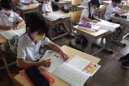 1年生国語で「サラダで元気」の学習に取り組んでいます。今日は、「きゅうりをトントントン、きゃべつをシャシャシャキ、トマトをストントントン」を選んだ後、その時主人公は何を思ったのか考えました。
