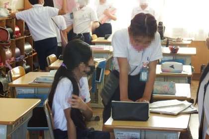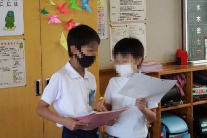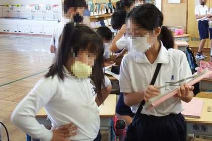 4年生国語「山場のある物語を書こう」の学習の様子です。絵からどのような物語が想像できるのか、ペアで意見交流をします。自分のアイディアが交流によってさらに広がっていきます。